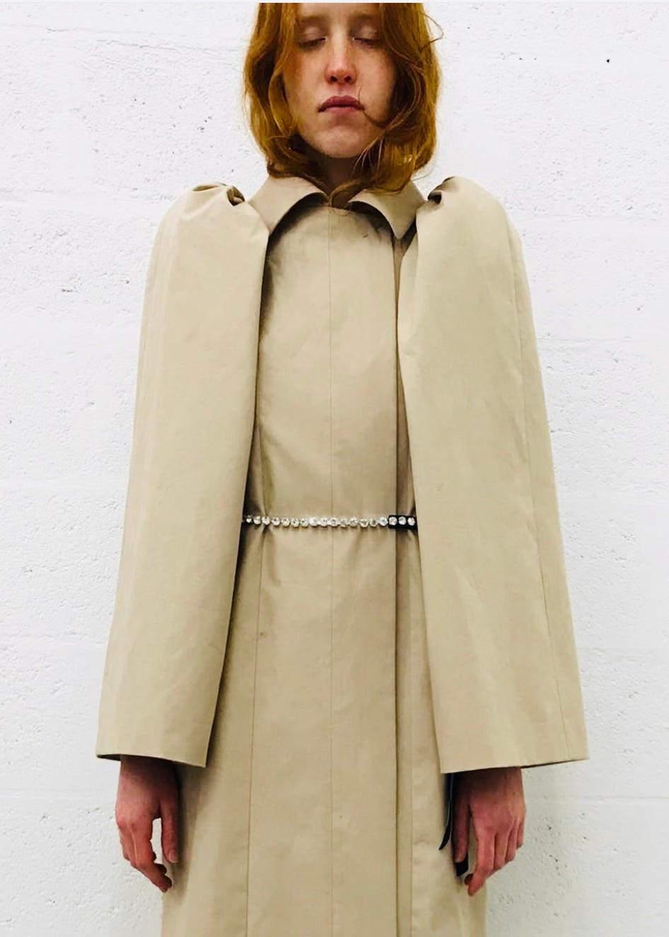 But a few years ago I also invested in a vintage Lutz Huelle “Over Sleeve” trench coat from his 2018 collection, which I sourced from a third party collector. I now pack it for any trip to Paris for its dramatic flair; it dresses up (cashmere short black dress, Miu Miu tall black boot with 5 inch block heel), or down (Stella McCartney skinny dark denim flares, men’s brown loafer).