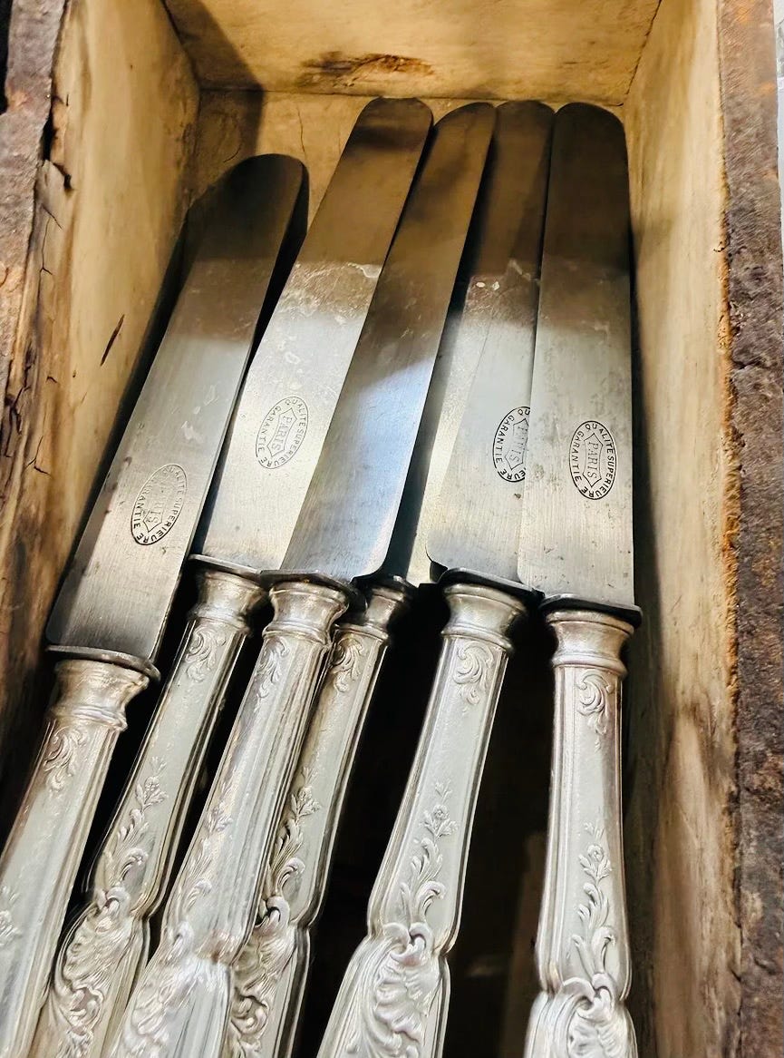 Paris-based entrepreneur Jane Bertch, and author of the best-selling and much beloved The Paris Ingredient, recently posted the image above, with a heading that read, “I know there is a saying ‘if these walls could talk’…But imagine if cutlery could talk? Especially those that have overheard French dinner parties for decades…”